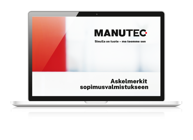 Manutec on täyden palvelun sopimusvalmistaja. Tutustu palveluumme lataamalla Askelmerkit sopimusvalmistukseen -opas.